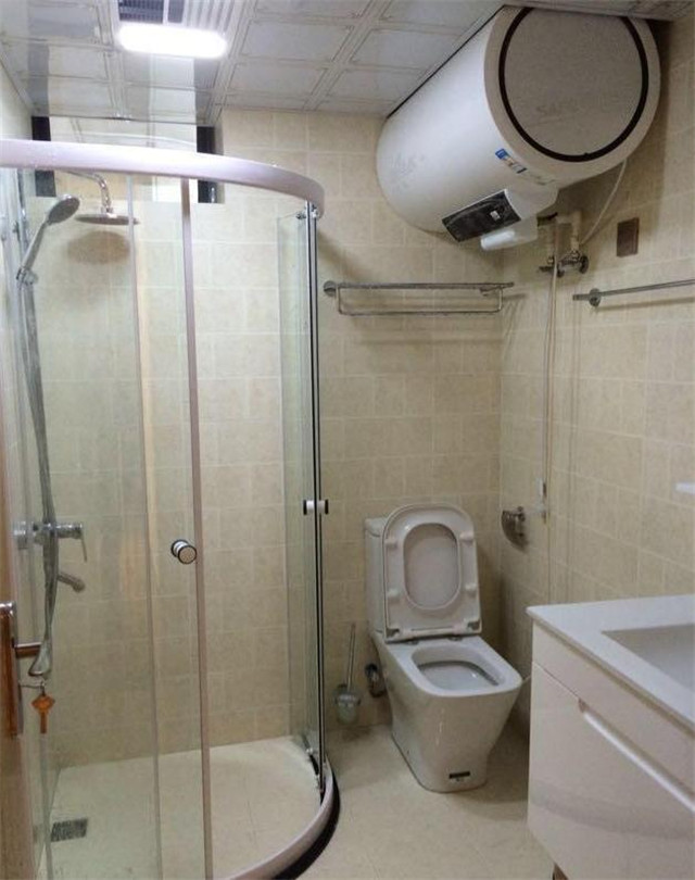 衛(wèi)生間設計直接模仿的酒店,采用刀把型的玻璃門,做到了干濕的分離,把淋浴區(qū)布置在角落的位置,這樣可以增加空間的利用率。