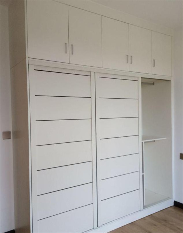 衣柜選擇的方法半內(nèi)嵌墻壁的方式,這樣可以加大一點衣柜的空間。直接做到天花板的好處就是,能夠在上面放一些大件的衣物或者是棉被。容量加大不少。