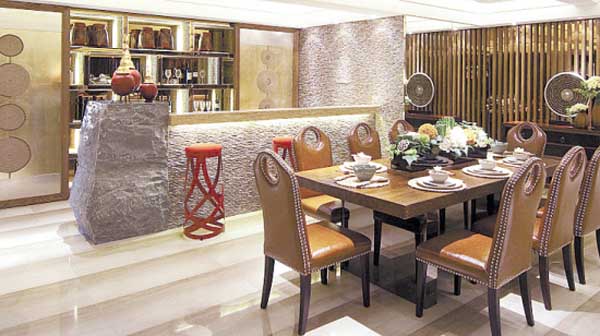 2、泰式三角靠墊,放置在低矮的藤椅中,不經(jīng)意地讓人放下身段,隨性坐臥,由不得你不放松。印尼的木雕,泰國的錫器可以拿來作為重點(diǎn)裝飾,即使隨意擺設(shè),也能平添幾分神秘氣質(zhì)。滿眼的粉艷彌漫,餐椅的金屬椅背和黑色絲絨椅套產(chǎn)生了強(qiáng)烈的對比。絲絨的臺(tái)布配上麻質(zhì)草編的餐盤墊,一股濃濃的泰國味道撲面而來。