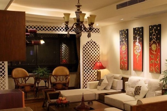 1、簡單的幾件家具,就能營造出風(fēng)味獨(dú)特的泰式客廳,例如清涼的藤椅、泰絲抱枕、精致的木雕、造型逼真的佛手、嫵媚的紗幔等等,而當(dāng)這一切都和諧地兼容于一室時(shí),我們便準(zhǔn)確無誤地感受到泰國的清雅、休閑的氣氛