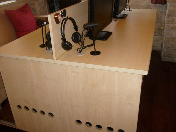 同時網吧桌的外形及設計結構是否合理也是非常重要,合理的結構及尺寸能讓上網客戶舒服的同時也節省空間。在造型方面有的新款網吧桌采用開關、usb在桌面,機箱在后面的結構,這樣不但方便了上網客戶開關機,數據傳輸方便,同時在有限空間情況下盡量開闊上網客戶的活動空間。