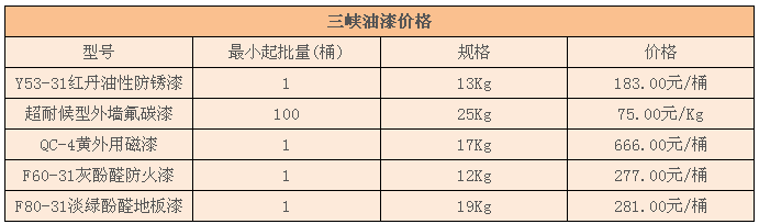 三峽油漆產品一般可分為5L、20Kg和25Kg三個規格,一般1L的產品可以涂刷10-12平米一遍,20Kg約等于14.3L,即可以涂刷143-71.6平米一遍,25Kg約等于17.9L,即可以涂刷179-214.8平米一遍。