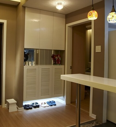 對于玄關(guān)較小的家庭,建議將鞋柜的門設(shè)計成滑動門,厚度也不要太大,容量以能存放10雙鞋為宜。另有一種“掛”在墻上的組合型鞋柜,很節(jié)省空間,造型也很特別,可以嘗試一下。相反,如果居室面積較大,可以安裝雙門、層高和功能齊全的鞋柜,還可單獨配換鞋凳、雨傘桶等。