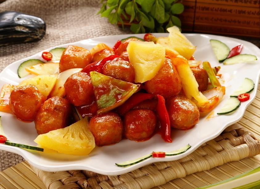 主料:豬里脊肉200克菠蘿150克 青椒1個 紅椒1個