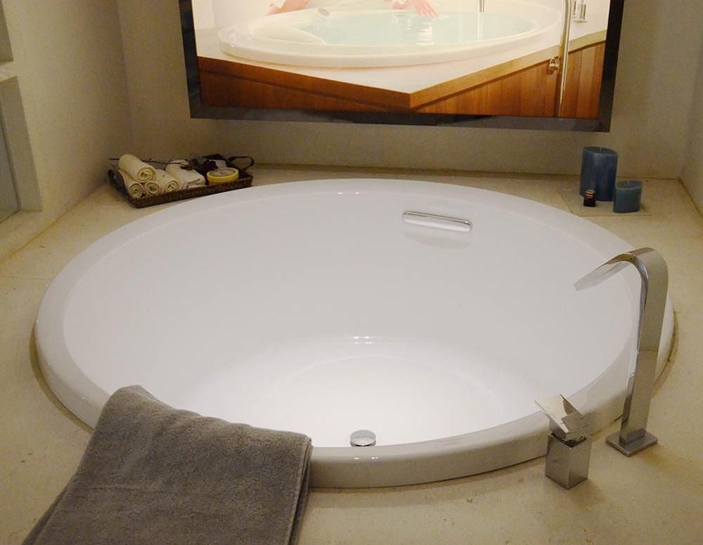 2、圓形嵌入式浴缸安裝要考慮到承重,防水,維修,美觀,使用性能等方面因素。大都安在衛(wèi)生間的一端。