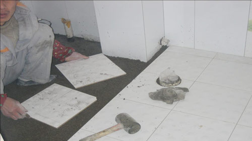 4、地磚粘貼時(shí)必須牢固,空鼓控制在總數(shù)的5%,單片空鼓面積不超過(guò)10%(主要通道上不得有空鼓)。