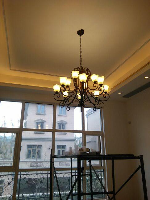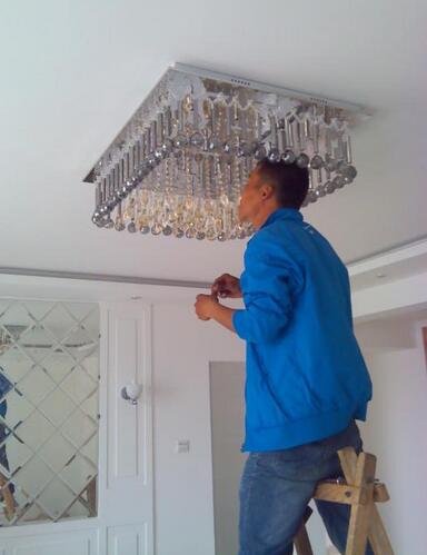 5.要是安裝吊燈的話,那么就會(huì)有一個(gè)電線從頂上到燈頭部位,那么就要注意,這根電線不能是繃緊的,應(yīng)該是松松纏著拉桿走下去的,不然以后這個(gè)長期繃緊的電線很容易出問題。