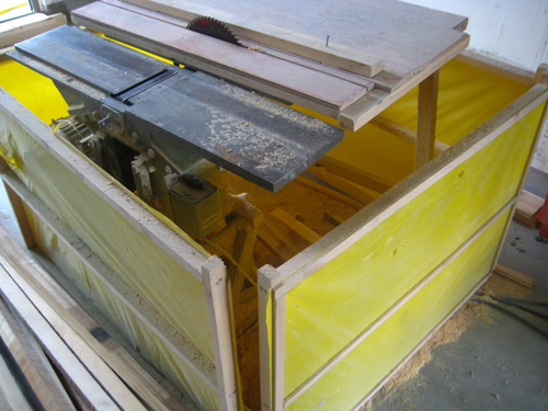 切割木材會造成現場木屑紛飛,非常臟亂,而這個工地卻特別干凈整潔,可見衛生方面下了不少功夫。機器都被圍了起來,這樣,垃圾就都掉在了圍欄之內,不會弄臟施工環境了。