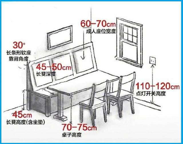 餐桌椅具體比例高度如下,這樣吃飯才比較舒適: