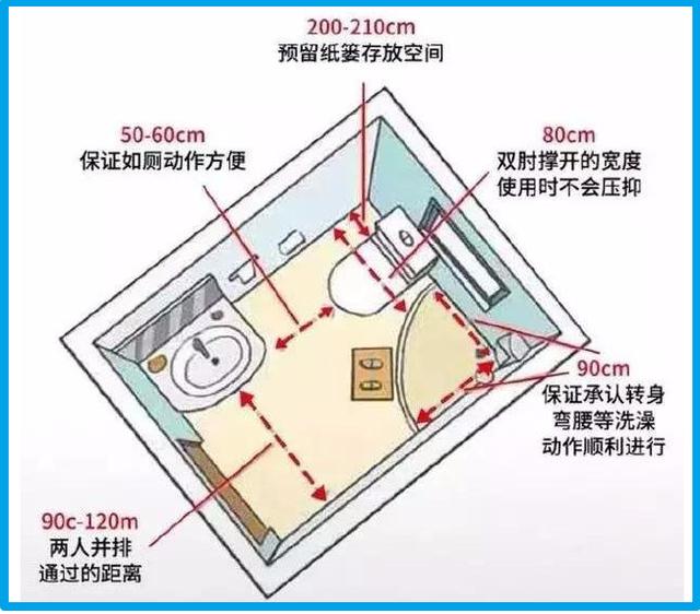 衛浴空間的活動間距,避免各個使用空間受到影響。