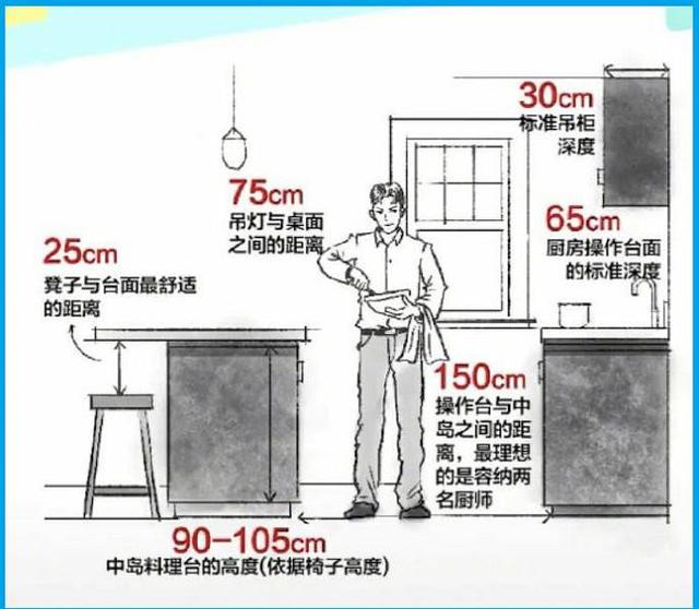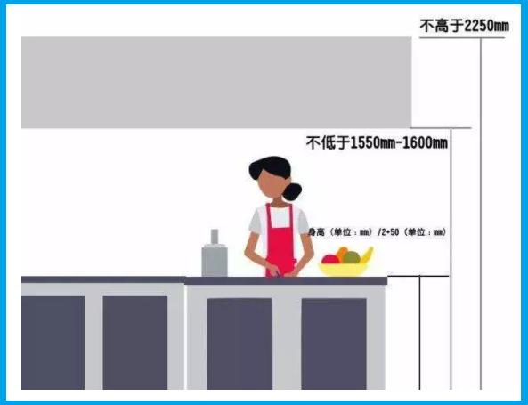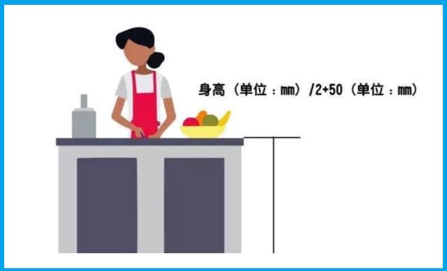 (臺面高度+身高)/2+50mm,這樣就不需要把腰彎很低去切菜。