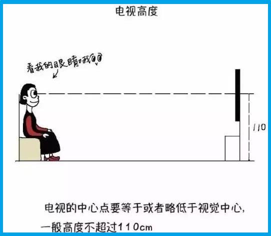 以坐下后正對著電視的視覺中心來計算,不超過110厘米為佳。太高仰著脖子看會使脖子酸痛。