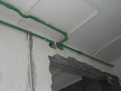 國家標準里規(guī)定冷熱水管鋪設(shè)時要有一定距離,但真正能做到的卻不多。這里把冷熱水管打了2個洞走,自然就分開了。