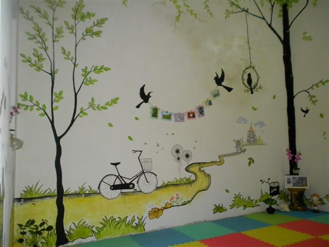 墻體繪畫簡稱為墻繪,墻繪分為幾種材料制作。普通墻繪是在已經(jīng)做完墻漆的墻面上,使用丙烯顏料在墻面上繪制圖案形成的。具體是在裝修墻面基層處理完畢后,先刷墻漆,再用鉛筆先在墻面上打草稿,用排筆或普通毛筆在墻面上勾勒圖案框體,然后根據(jù)自己的喜好上色彩就好了,等丙烯顏料干透后就完成了墻繪制作。