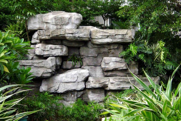 2、粘合膠接假山:膠接山體,第一步,先要調好水泥膠漿,注意膠漿要隨用隨調,還要注意膠漿的稀稠度。第二步,石材加工,把需要膠接的山體用錘、鑿、鋸等工具加工出紋理和比較奇特的形狀來。第三步,粘合山體,在需要粘合的山石兩面用嵌板分別涂上水泥膠漿使山石吻合為一體,粘合時要注意,盡量使山石粘合處看不出斷裂的痕跡,還要注意把粘合處多余的膠漿清除干凈。