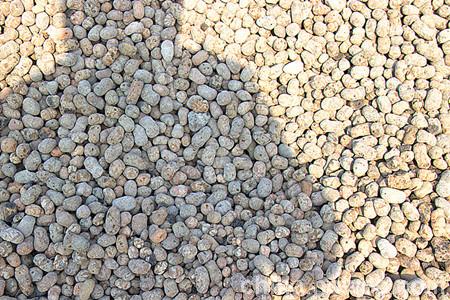 4、陶粒過篩、水悶:為了清除陶粒中的雜物和細(xì)粉末,陶粒進(jìn)場后要過兩遍篩。第一遍用大孔徑篩(篩孔為30mm),第二遍過小孔徑篩(篩孔為5mm),使5mm粒徑含量控制在不大于5%的要求,在澆筑墊層前應(yīng)在陶粒堆上均勻澆水,將陶粒悶透,水悶時間應(yīng)不少于5d。