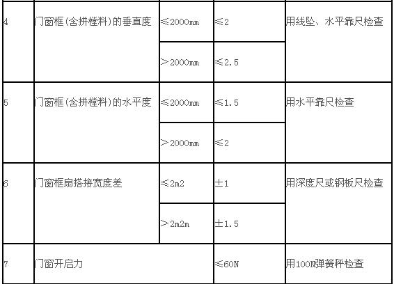 表2 鋁合金門窗安裝質(zhì)量的允許偏差和檢驗方法