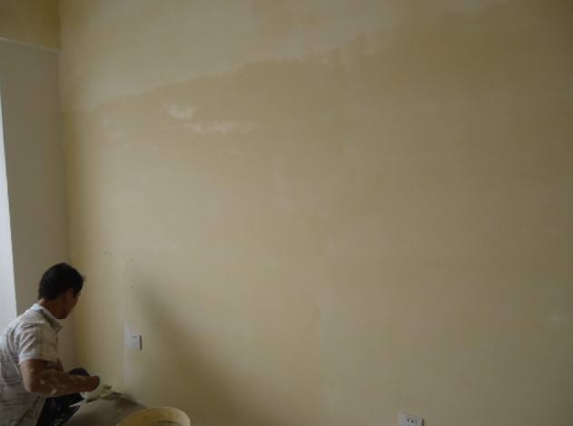用刮板或抹刀按常規(guī)批刮,在刮的時(shí)候盡量用力均勻讓其充分和墻面粘結(jié),一步到位不要反復(fù)批刮。