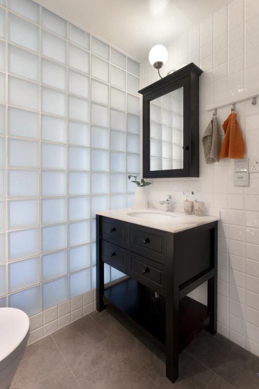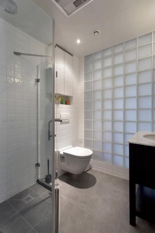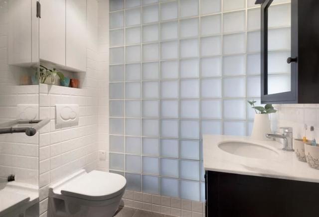 玻璃磚是亮點,因為這個衛生間是一個暗衛,那么設計上主要解決的問題就是透光性。