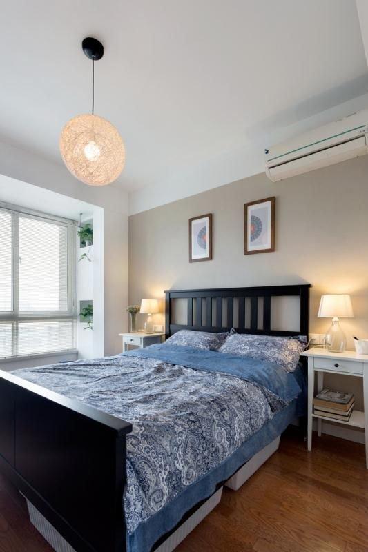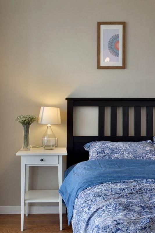 小角度的床頭,裝飾畫搭配米色墻紙,有點日式的感覺哈。