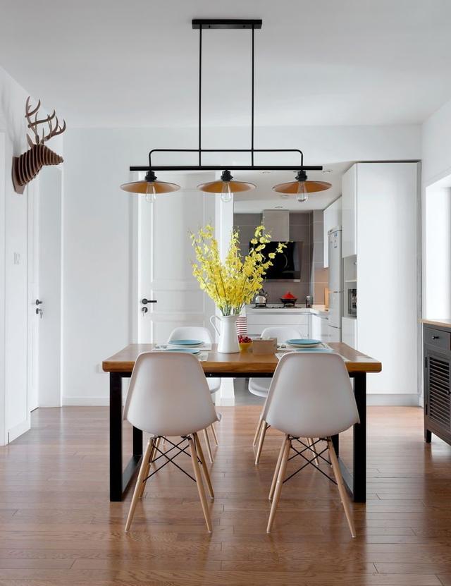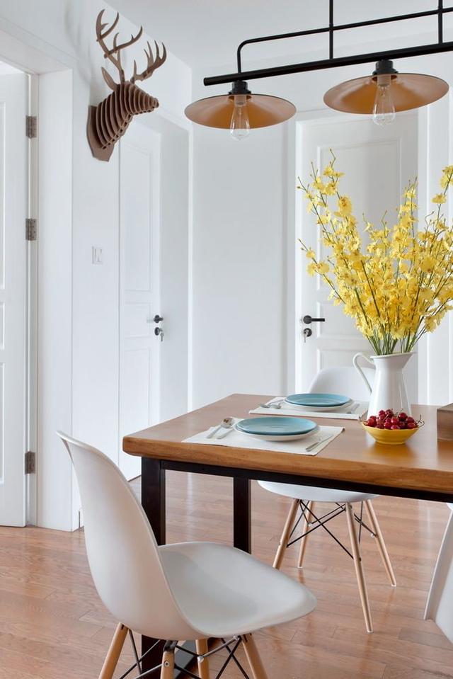 餐廳的空間,是整個中間的中心點,也是家里的主角。一家人圍著餐廳轉其樂融融。客廳與餐廳的空間是貫穿的,餐廳的空間之前也是一個中心點,算是走廊,現在次臥的與中心點的墻打掉,增大了不少的空間,還能非常合理的利用起中心點。