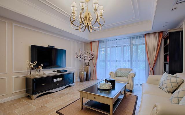 電視背景墻簡單的裝扮,溫馨舒適,黑桃木的電視柜,大氣,,純色的窗簾,特別的耐看,一盞古典有氣質的吊頂,瞬間調動整個氛圍。