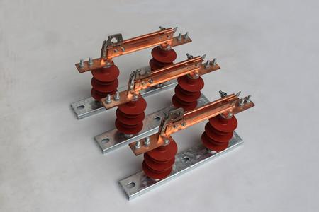 高壓隔離開關為單相式結構,每相由底架、支柱絕緣體、閘刀、觸頭等部分組成。閘刀側面有調節接觸壓力的螺絲和壓緊用的彈簧,上端裝有固定拉扣和其相連的自鎖裝置,供絕緣鉤棒進行分合閘之用。