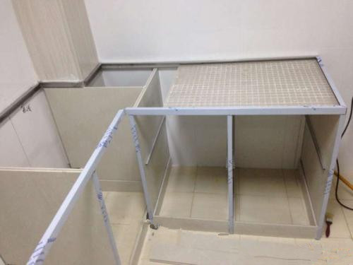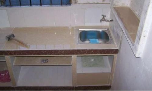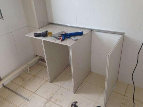 4、把切割好的瓷磚通過水泥覆蓋到原先水泥磚鋪好的地面上,然后將用來站立的作為立柱的瓷磚采用背對背的方式用結構膠粘貼好,然后把站立的瓷磚粘貼在底部的瓷磚上面,因為我們采用了結構膠,這需要等待12個小時左右等它固定好,等站立的瓷磚固定好之后,然后需要鋪一層瓷磚在上面,再鋪完這層之后,再用碎瓷磚一層在上面,來增加臺面的高度,最后就是做好灶臺的的臺面與柜門,這里最好可以找商家或者師傅幫你完成。