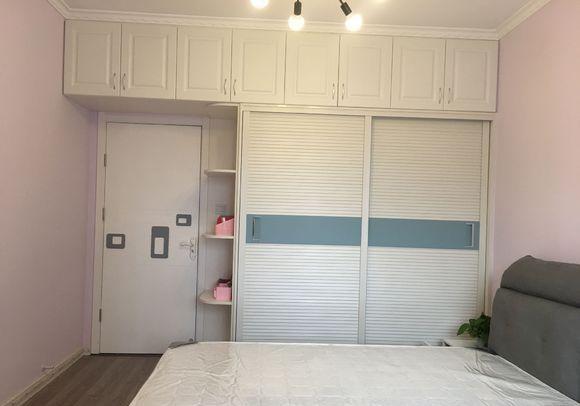 主臥也是差不多的風格,衣柜延伸至門上面,充分利用了所有空間。
