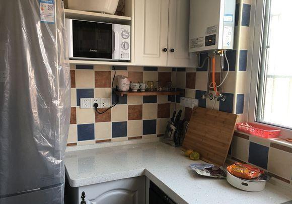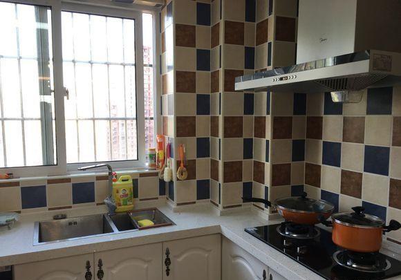 廚房是U型櫥柜,馬賽克墻磚很亮眼,顯得白色櫥柜沒那么單調。