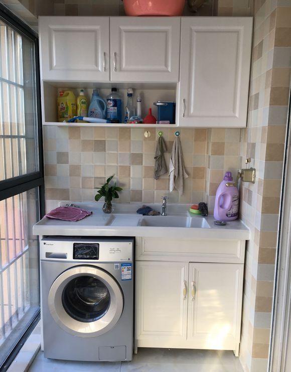 陽臺部分一邊是花架一邊是洗衣柜和吊柜,實用性美觀性都兼具了。