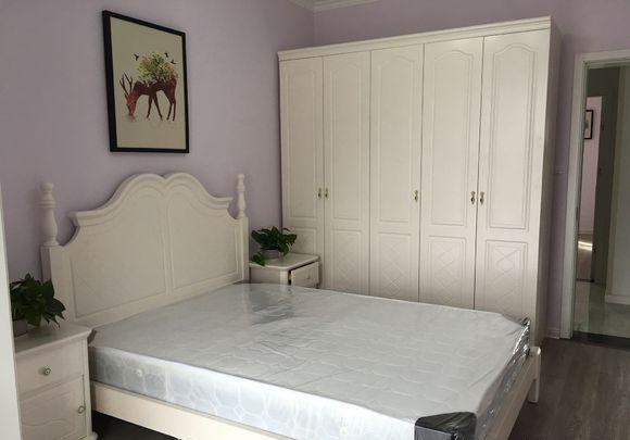 次臥是淺紫色的墻面,簡美風格家具少女感十足。