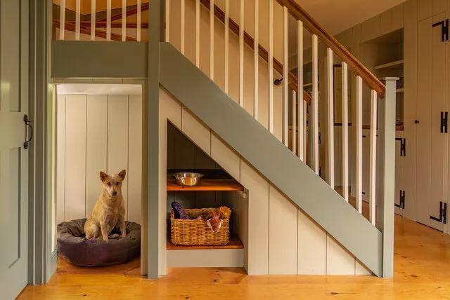寵物,如兒童,可以在擁有自己的空間時找到舒適感和安全感。還有什么比在樓梯下安置一個它的家更合適的地方?