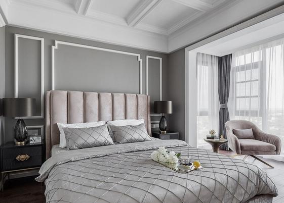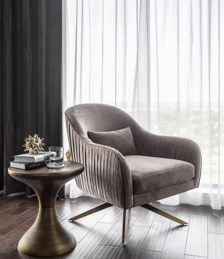 主臥落地窗邊的單人沙發(fā),精致的茶幾
