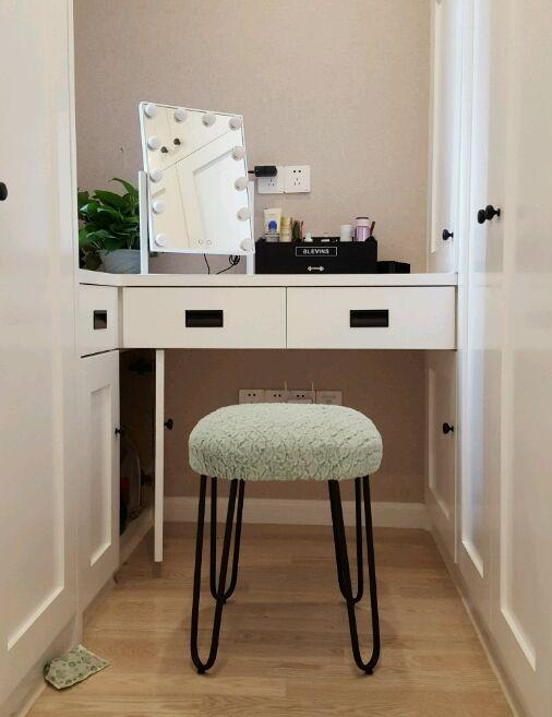 主臥還隔了一個小小的衣帽間,定制了兩個大衣柜,用一張梳妝桌連接在一起,小小的空間非常實用。