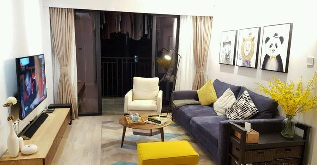 客廳沙發選擇深灰色的布藝沙發,墻上掛三幅卡通畫做裝飾。因為空間不大所以選擇小巧的圓形茶幾,底下還鋪了塊地毯,整體搭配簡潔舒適。
