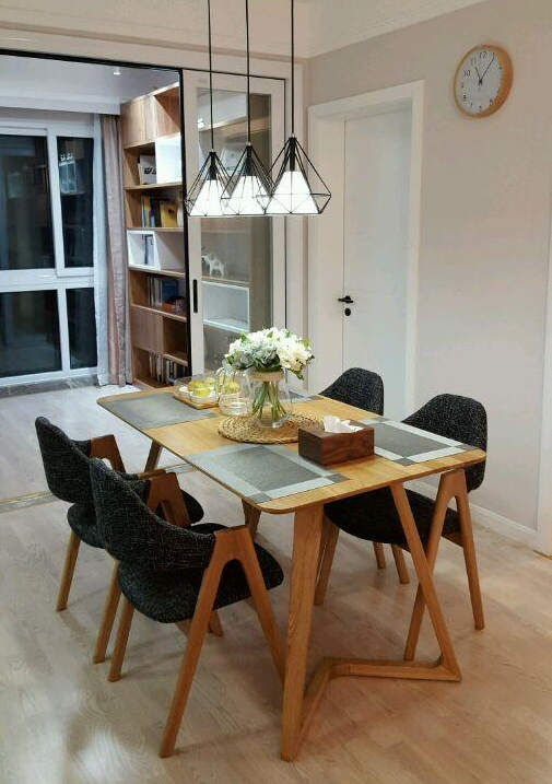 餐廳和客廳在同一水平線上,沒有隔斷顯得整個空間寬敞通透。