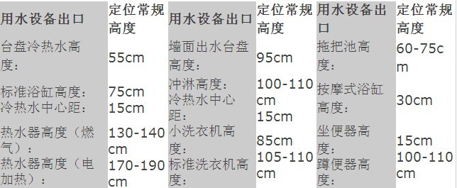 墻槽的寬度,單槽為4cm,雙槽為10cm,墻槽深度為3-4cm。并注意橫平豎直。墻槽高度是根據用水設備的不同而定。