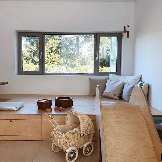 他們家還有這樣一個小飄窗,結合日本榻榻米的設計,坐墊底下全部是儲物空間。非常實用與便捷的設計。