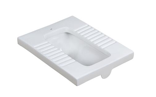 蹲式馬桶是一體成型,它的一端是凸起起到擋住便溺物外濺的作用、中央有一個凹陷的長槽、踏座是由前擋底部沿著中央長槽向外延伸而得到。下蹲式馬桶會根據(jù)周圍壞境的地面平整度與蹲式馬桶底部邊緣的切面完全契合再加上該邊緣部齊平或者低于該蹲式馬桶的踏座,這樣的設計方法可以使地面的水可輕松流入長槽中并被排出。