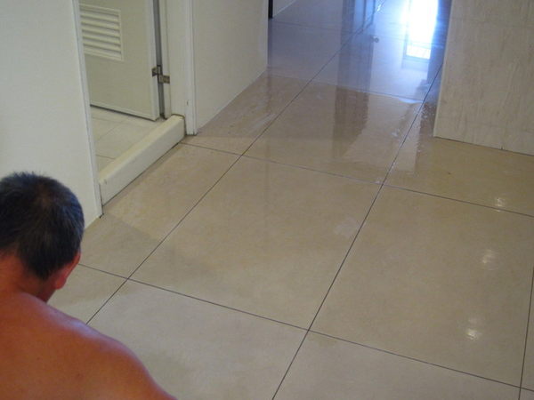 7、鋪貼并檢視拋光石英磚吃漿情形