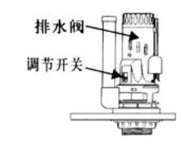 如圖調校節(jié)開關可以使排水閥大排水。當調節(jié)開關向下移動密封小孔,排水量就大。反之,向上移動使小孔打開,排水量就小。