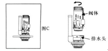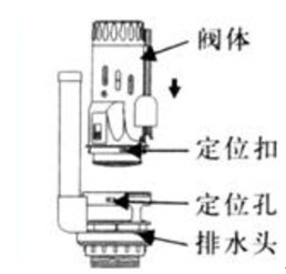 c. 按圖將閥體的定位扣扣緊在排水頭的定位孔上。然后順時針旋轉閥體。安裝好聽見“咔”一聲就OK了。