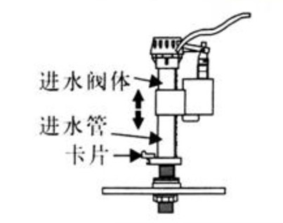 如圖所示首先將進水閥的卡片旋向“OPEN”方向。然后拉動進水閥體就可以使進水閥整體升高或降低。卡片的緊鎖與調松見進水管的標識。