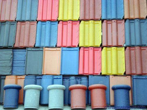 彩瓦的全稱是彩色混凝土瓦或彩色水泥瓦,即主要構成物質是混凝土。傳統的水泥瓦是用干硬性混凝土經過滾壓成型的瓦,這種水泥瓦在強度、承載力、瓦型等方面均達不到人們的要求。后來人們在傳統的水泥瓦生產工藝的基礎上加以改造,采用模具,經過高壓壓制而成的瓦,它在上述各方面的性能大大得到改進。
