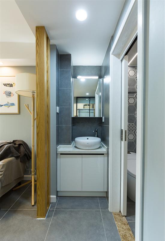 小戶型最讓人著急的可能就是衛(wèi)生間的設計了,然而出人意料的是這極小的三分地,也做了很好的干濕分離,毫不拘束。墻上深深淺淺的花樣瓷磚,儼然看到冷酷表面下隱藏著火熱的心。