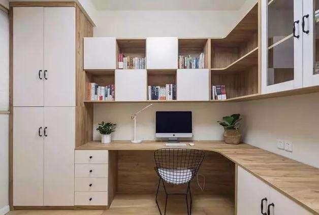 書房,收納功能非常的強大,白色的門板搭配原木色的柜體,自然舒適。
