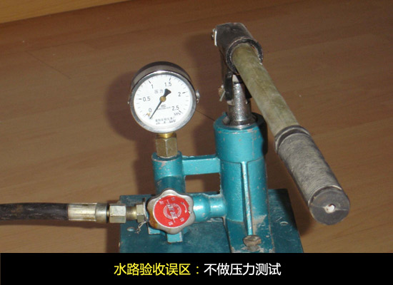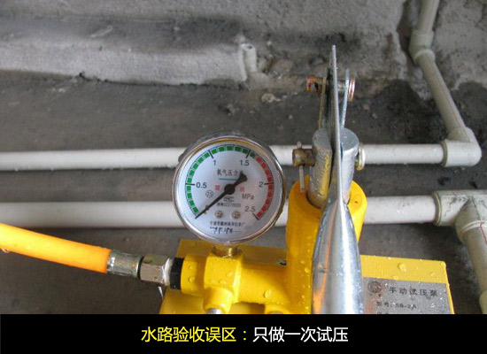 一些業主在驗房的時候,往往出現這樣的誤區,認為水路只需要測試一次。其實只試一次壓并不能完全判斷水路是否正常使用,因為首次打壓緊將管道空氣排出。而多次打壓,能夠不斷地試驗出準確的水路情況。