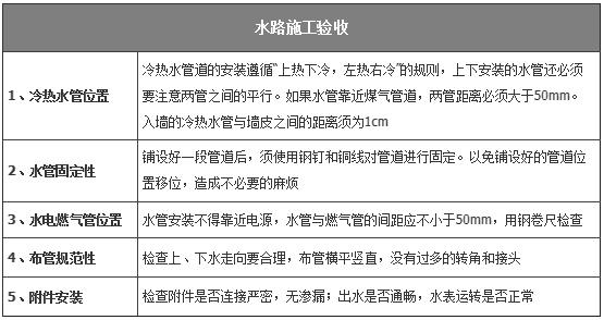 水路改造施工注意的事項較多,驗收的時候可以對照施工注意事項來逐條看家中的水路是否符合規范。