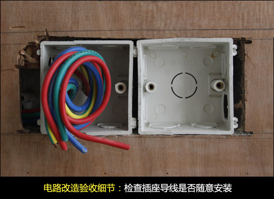 有些不負責任的施工方在施工時將電線直接埋到墻內,電線沒有用絕緣管套好,電線接頭直接裸露在外,這樣容易引發安全隱患,是典型的偷工減料現象。電線的鋪設規范明確,電線外必須有絕緣套管保護,接頭不能裸露在外。驗收的時候要特別注意這一點。